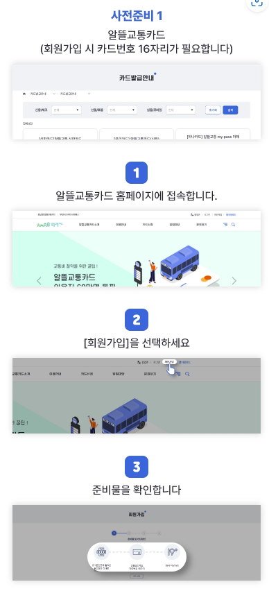 1. 원하는 카드사를 통해 알뜰 교통카드를 발급 받는다. "알뜰교통카드 홈페이지 - 카드발급안내" 클릭하여 카드 발급