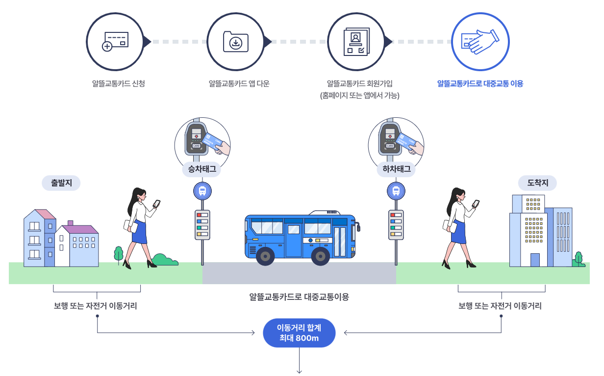 - 대중교통 1회 이용시 이동거리 최대 800m까지 인정